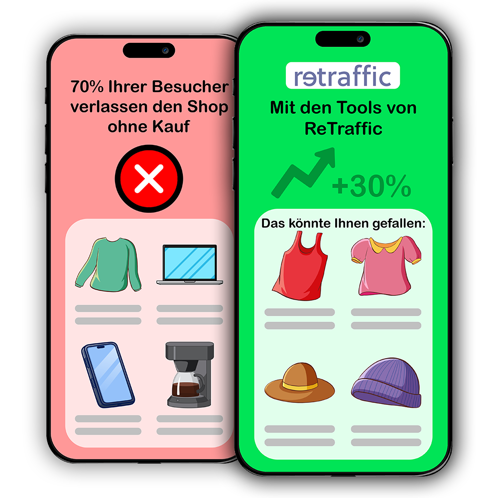 Beträchtliche Gewinne gehen Onlineshops durch User*innen verloren, die kurz vor dem Kauf abspringen. ReBounce Landingpage holt sie zurück und macht sie zu Kundinnen und Kunden: Nach dem Klick auf den Zurück-Button im Browser spielt ReBounce Landingpage eine Webseite im CI Ihres Shops aus. Das auf Conversion optimierte UI hebt ähnliche Produkte sowie Gutscheine und Rabatte hervor und überzeugt andernfalls abspringende Nutzer*innen von einem Kauf. So sorgt ReBounce Landingpage für Umsatzsteigerungen von bis zu 20 Prozent.